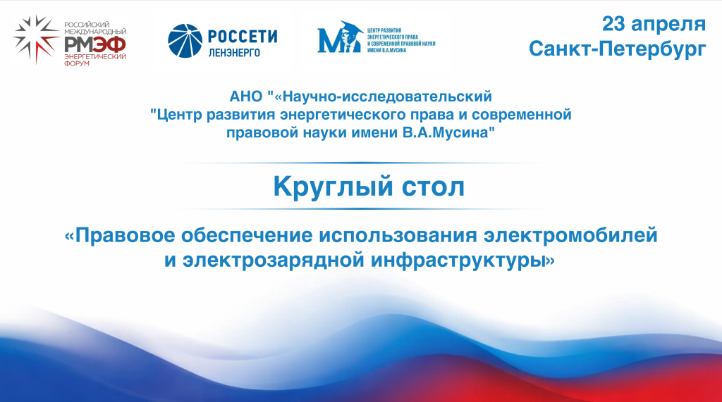 23 апреля 2026 года в рамках Российского международного энергетического форума (РМЭФ 2026) состоялся круглый стол, организованный Центром имени В.А.Мусина, на тему: « Задачи развития электрозарядной деятельности в Российской Федерации и вопросы правового обеспечения». Модератором круглого стола выступила директор Центра имени В.А.Мусина, д.ю.н, профессор В.В.Романова. С докладами выступили: генеральный директор АО «ЕИРЦ Санкт-Петербурга» Д.Е.Шабарин, председатель Ассоциации производитель и операторов электрозарядных станций А.В.Сафарян, заместитель директора по работе с оптовым рынком и крупными клиентами АО «Мосэнергосбыт» Ю.В.Опря, заместитель генерального директора по экономике и финансам ООО «РН-энерго» А.В.Молчанов, руководитель направления Центра розничного бизнеса ПАО «Интер РАО» Н.Е.Насекина, научный сотрудник университета Цинхуа, к.ю.н. ГАО Юй. В работе круглого стола приняли участие: ведущий научный сотрудник Центра имени В.А.Мусина, к.ю.н. Н.А.Акимов, сотрудники, аспиранты Центра имени В.А.Мусина, представители энергетических компаний. Участники отметили крайнюю актуальность и своевременность темы круглого стола, необходимость развития правового регулирования в сфере использования электромобилей . Центр имени В.А.Мусина сердечно благодарит ПАО «Россети Ленэнерго» за возможность принять участие и провести мероприятия в рамках РМЭФ 2026.