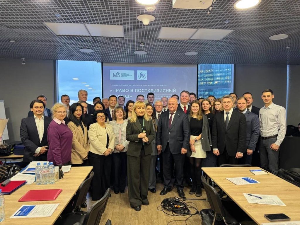 28 ноября 2025 года в преддверии дня Юриста в Москве успешно состоялась международная научно-практическая конференция «Право в посткризисный период». Организаторы: АНО «Научно-исследовательский «Центр развития энергетического права и современной правовой науки имени В.А.Мусина» и Международный союз юристов. В конференции приняли участие более 200 человек: представители научного,экспертного, судейского сообщества, государственных органов, международных, общественных организаций, аспиранты, докторанты из Российской Федерации и зарубежных государств.